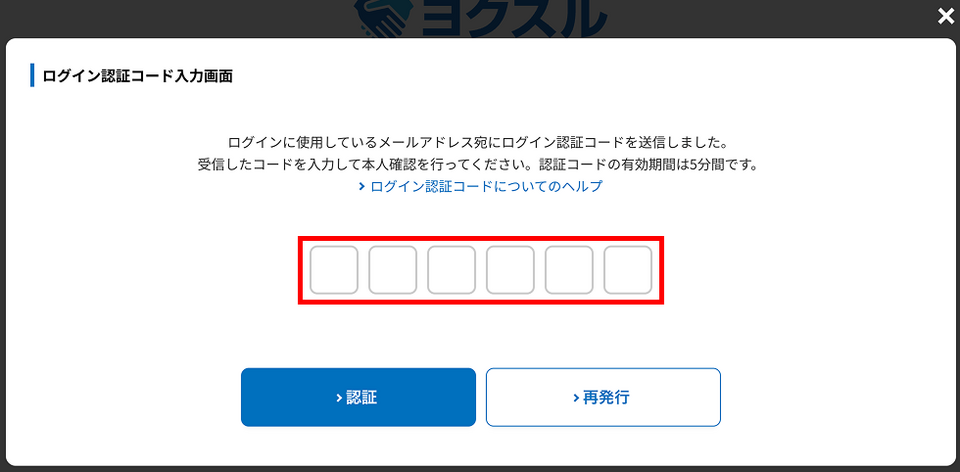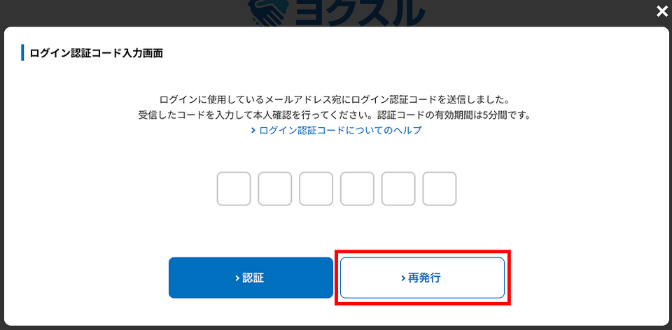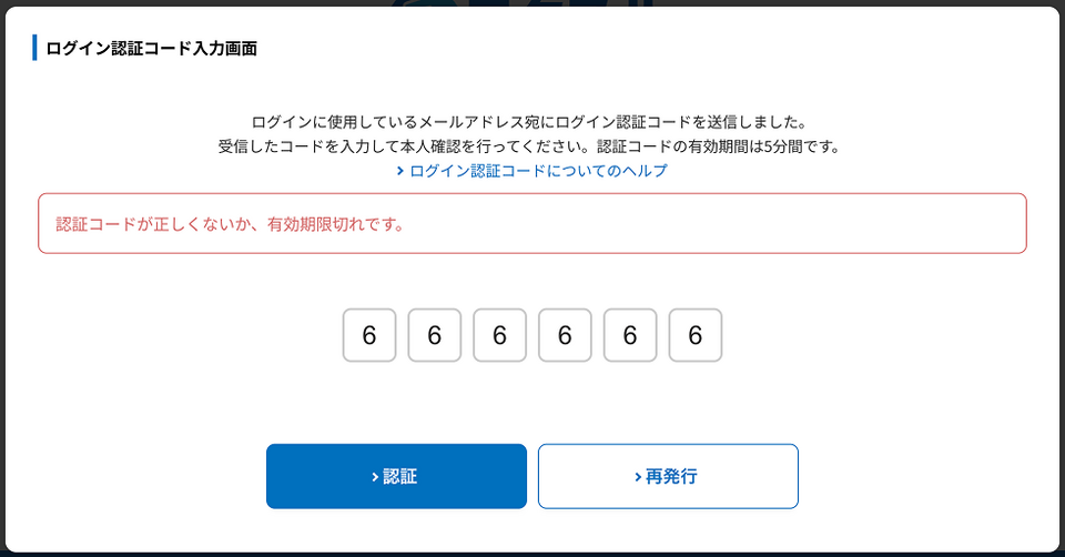再発行を行うと、古いコードは無効になります。最新のメールに記載されているコードを入力してください。 -