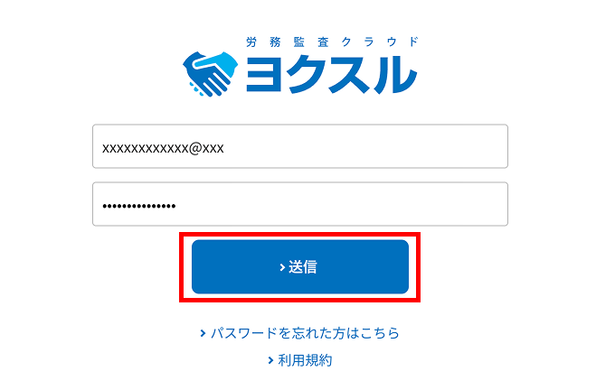 ログイン画面でIDとパスワードを入力し、「送信」ボタンを押します。
